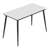 Стол оснащен высококачественной фурнитурой. Конструкция имеет металлическое основание из профильной трубы диаметром 40 мм, покрытое порошковой краской, что защищает от влаги, царапин и мелких ударов. Столешница выполнена из надежной ламинированной ДСП (ЛДСП) толщиной 16 мм, что гарантирует прочность.